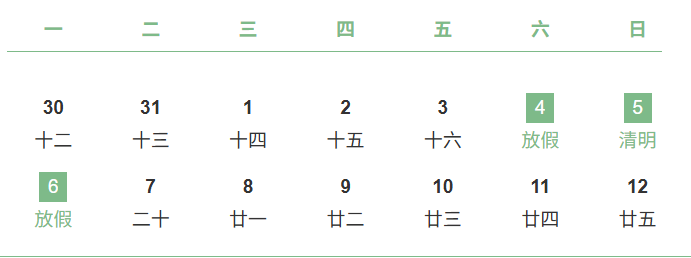 放假時間2026年4月4日(星期六)至4月6日(星期一)放假,共3天。?